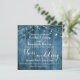 Rustic Blue Wood, White Light Strings Wedding Invitation