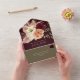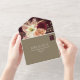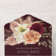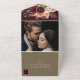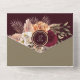 This rustic all-in-one wedding invitation features a stunning floral arrangement of burgundy, peach, and ivory blooms with pampas grass and greenery, perfect for fall or boho-inspired weddings. The foldable design includes a built-in RSVP and a personalised photo and return address on the back flap. A romantic and eco-friendly choice for couples seeking both style and convenience.