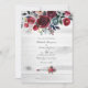 Rustic Boho Chic Burgundy and Navy Floral Wedding Invitation