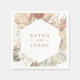 Beautiful rustic boho-chic dried palm fronds, roses and orchid geometric frame, personalised paper napkins. Text font style, and colour can be customised. Designed to match our Bohemian Oasis Collection.