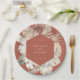 Beautiful rustic boho-chic dried palm fronds, roses and orchid geometric frame on rust colour background, personalised paper plates. Designed to match our Bohemian Oasis Wedding Collection.