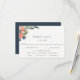 Watercolor floral arrangement in shades of navy blue, coral and rose with muted navy blue colour backing, wedding RSVP cards with meal choice option. You are able to customise the text font style, colour, and size.
