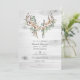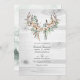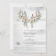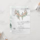 Dusty brown rustic silk cotton balls and eucalyptus leaves bohemian wedding invitation with boho feathers and horns. The QR code on the reverse directs to your wedding site where people can learn more and rsvp.