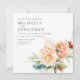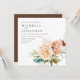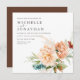 An elegant wedding invitation set featuring watercolor florals in rustic beige, burnt orange, sienna tones on a brown background.