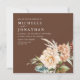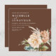An elegant wedding invitation set featuring watercolor florals in rustic beige, burnt orange, sienna tones on a brown background.