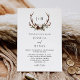 This chic rustic wedding invitation with antlers features the monogram initials of the bride and groom framed by stag antlers which are decorated with a watercolor burgundy floral bouquet. Please contact me through Zazzle Chat if you need design tweaks, more matching products, or other colorways.