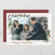 Rustic Boho Greenery Gold Dry Brush Effect Photo Holiday Card