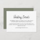 Modern Wedding Details enclosure card with a rustic boho design. With customisable lettering, you can add your names, details and website. The back has a soft sage green colour to add contrast. Great for adding a casual and simple touch to your wedding stationary suite.