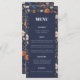 A beautiful rustic, Boho, menu decorated with a watercolor floral design which incorporates navy blue, terracotta, ecru and rust colours. Easily edit the bride and groom's names, wedding date and menu items. If the font size or margins need adjusting, please enter the design tool to adjust the text bounding box or font size to better suit your layout. If you require assistance we are happy to help. Feel free to message us using Zazzle Chat. Rustic Boho Navy Rust French Country Wedding Menu.