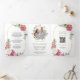Rustic Boho Pink Roses Floral QR Code Wedding Tri-Fold Invitation