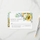 A custom wedding RSVP card with a lovely bouquet of rustic watercolor sunflowers, white roses and eucalyptus greenery. The front has your required response date with a placeholder for your guests to write their names and check if they will attend or if they are unable to attend. This design is a lovely choice for summer or fall weddings in a variety of locations or venues.