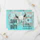 Rustic Boho Teal Western Sunflowers Cow Skull Save The Date