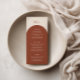 Introduce your reception dining with this elegant bohemian menu card, designed to coordinate with the terracotta arches collection while offering a fresh twist on the signature look. The front features a simple burnt orange arch curve that gracefully frames your meal details, including appetizers, main course selections, and desserts, all set against a light brown background. Retro design. This subtle variation creates a rich, natural copper backdrop that lets your menu information take center stage.