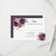 Rustic boho wedding RSVP featuring lush watercolor flowers in purple, violet, pink, mauve, and red with matching greenery. The back of the card is a dark purple. The template is easy to personalise using a mix of fun and handwritten calligraphy fonts. Matching wedding invitation available.