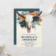 Celebrate your love with this rustic boho wedding invitation featuring a bold cow skull centerpiece surrounded by rich dark teal and burnt orange florals. Perfect for western, desert, or outdoor weddings, this design captures both earthy elegance and free-spirited charm. Personalise the fonts and wording to match your unique vision for an unforgettable celebration.