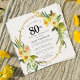 Beautiful spring floral arrangement features yellow and white daffodils decorating a rustic frame. The assorted greenery and daffodil stems give it modern Boho vibe. The back of the 80th birthday invitation is bright sunny yellow. Perfect choice for a springtime birthday party.