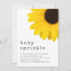Rustic Bold yellow Sunflower Baby Sprinkle Shower. Gender neutral. A giant beautiful sunflower fills the top right hand side and and the header is large below in stylish lowercase with the details at the bottom. Easily personalise the text to your own details.