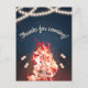 This fun bonfire thank you postcard is great for all ages. The design features a blazing bonfire and sticks that are piercing marshmallows over a warm fire. The background is forest, with a blue sky and twinkle lights above. It's a great way to say thank you to all your guests that came to your bonfire party!