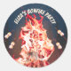 This fun bonfire birthday party stickers is great for any type of bonfire party to use on any party favours. The design features a blazing bonfire and sticks that are piercing marshmallows over a warm fire. The background is forest, with a blue sky and twinkle lights above. It's great for camping or a rustic outdoors party.