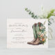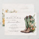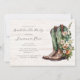 Celebrate with a rustic country bachelorette theme featuring watercolor floral cowgirl boots against a whitewashed wood backdrop. Perfect for brides who blend laid-back charm with western style, this design brings an earthy country vibe to your celebration. Available as printed invitations, digital downloads, or both.