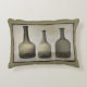 Rustic, still life art with 3 antique bottles in muted tones of green and brown.
