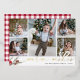 Share holiday greetings with these rustic chic Christmas photo cards featuring five favourite photos in a collage layout (4 square and one portrait/vertical). "Warm Wishes" appears along the bottom in gold foil hand lettered script typography, accented with pine cones, berries and red holiday flowers on a painted bough. Personalise with your name(s) and the year along the bottom. Cards reverse to a rustic buffalo check plaid pattern.