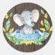 Rustic Boy Elephant Baby Shower Blue Classic Round Sticker