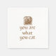 This paper napkin features the hand-lettered message “You are what you eat.” paired with a stamp-style illustration of toast. A warm and playful addition to any bread lover’s table, and a charming touch for artisan bakeries or thoughtful homemade gifts.