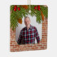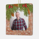 Rustic Brick Pine Boughs Memorial Photo Christmas Ceramic Ornament