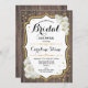 Rustic Wood Bridal Shower. Elegant design with faux glitter gold and dark brown wood pattern. Features white roses and script font. Perfect for a stylish country style bridal shower. Customise with your own details.