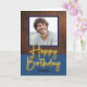 Rustic Brown and Blue leather Gold Script Birthday Card