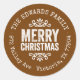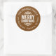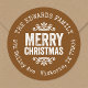 Affordable custom printed round return address stickers personalised with your family name and return address. This rustic modern holiday design features distressed MERRY CHRISTMAS lettering on a brown background. Use the design tools to choose any background colour and edit text fonts and colours to further customise your own unique holiday return address labels.