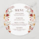 Enter into timeless elegance with our rustic bohemian garden fall wedding round menu card, showcasing a delightful delicate autumn brown and terracotta flower wreath. Enhance your wedding dining experience with this sophisticated addition, designed to bring a sense of refinement to your celebration. Perfect for elegant fall outdoor wedding themes.