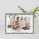 Rustic Brown Grey Burlap Elegant Script Minimalist Holiday Card. Send customisable and personalised holiday greetings to friends, colleagues and family in simple, chic, elegant and modern photo design festive, natural minimalist style cards! A beautiful calligraphy of " joy " frames your photo in front. Below photo features your custom greeting message from your family name in modern typography. Reverse to reveal a reindeer in brown grey burlap texture background.