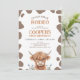 Rustic Brown Highland Cow First Rodeo Birthday Invitation