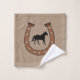 Rustic black horse silhouettes, horseshoes, and faux burlap print bath towels.