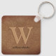 Rustic brown leather monogram stylish script name keychain, chic stylish, you can customise further if you wish.