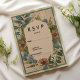 Rustic brown wood with green, dark orange, and gold hand-drawn beautiful foliage, woodland floral Wedding RSVP invitations. This stylish modern abstract invitation is perfect for any classy and chic girl. This design is ideal for a trendy party event. Customise this design with your message and personalised information. All designs are printed