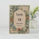 Rustic brown wood with green, dark orange, and gold hand-drawn beautiful foliage, woodland floral Wedding Table Numbers invitations. This stylish modern abstract invitation is perfect for any classy and chic girl. This design is ideal for a trendy party event. Customise this design with your message and personalised information. All designs are printed