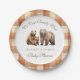 Rustic Brown Plaid Grizzly Bear Family Baby Shower Paper Plate