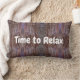 Time to relax with this lumbar pillow perfect for a rustic room or cabin. Combine the beauty of nature with a kaleidoscope affect and the result is this beautiful, abstract, rustic lumbar pillow. The deep lines of the wooden bark create stripes and beautiful colour contrast in this abstract pattern. "Time to Relax" appears in white font which can quickly and easily be customised to your desire.
