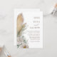 Enhance your wedding stationery with this elegant invitation featuring original watercolor pampas grass, off-white florals, and earthy palm foliage set against a white background with warm dark brown typography. The warm, moody tone beautifully enhances the soft botanical artwork, creating a modern yet rustic aesthetic perfect for boho, desert, autumn, or neutral-themed weddings. Fully customizable, this invitation offers a sophisticated and unique way to showcase your wedding details.