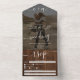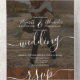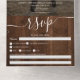 A rustic country brown wood all in one calligraphy wedding invitation with photo with rsvp, accommodations, details, and more info. With a modern and trendy script, add your initials.