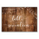 This rustic, elegant wedding and event invitation suite of designs presents some popular wedding design trends combined in a fresh way. With a rich brown wood background and dual strings of twinkling light accents, I've combined a beautiful modern script font to render graphics depicting key words and phrases in the design set. In this table card, the "fancy type" reads "table seventeen". This collection is ideal for a country or casual post-wedding reception or celebration event. All layers are unlocked to allow you as much control as you desire. // 19 // ***** Please note that because the centre text graphic is quite large, you will want to check the margins with your holder and make sure the letters will not be covered by any part of your holder's design. The graphic can be resized if you need it to be smaller. Just click to customise the card, then choose the top layer to reduce its dimensions as you see fit! *****
