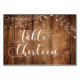 This rustic, elegant wedding and event invitation suite of designs presents some popular wedding design trends combined in a fresh way. With a rich brown wood background and dual strings of twinkling light accents, I've combined a beautiful modern script font to render graphics depicting key words and phrases in the design set. In this table card, the "fancy type" reads "table thirteen". This collection is ideal for a country or casual post-wedding reception or celebration event. All layers are unlocked to allow you as much control as you desire. // 19 // ***** Please note that because the centre text graphic is quite large, you will want to check the margins with your holder and make sure the letters will not be covered by any part of your holder's design. The graphic can be resized if you need it to be smaller. Just click to customise the card, then choose the top layer to reduce its dimensions as you see fit! *****