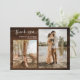 Modern simple and elegant brush script horizontal layout with 5 photos collage grid wedding thank you on country barn rustic brown wood.