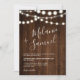 Rustic brown wood string lights photo wedding invitation