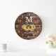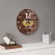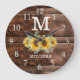Rustic Brown Wood Sunflower Family Name Monogram Large Clock