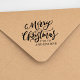 Add a custom touch to your holiday envelopes with our Brush Script Merry Christmas rubber stamp. The custom holiday stamp features Merry Christmas in a hand-lettered brush script with your last name displayed below.