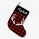Rustic Buffalo Check Plaid & White Deer Antlers Small Christmas Stocking